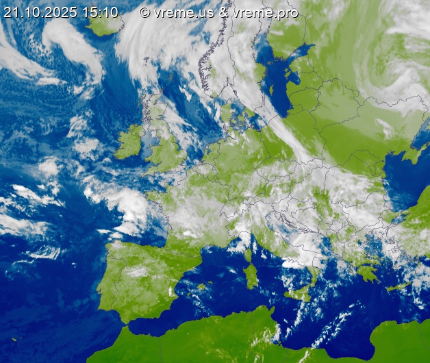 Prva slika prikazuje oblačnost v vidnem (podnevi), druga pa v infrardečem spektru.