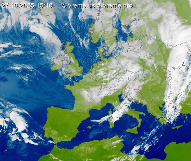 Prva slika prikazuje oblačnost v vidnem (podnevi), druga pa v infrardečem spektru.