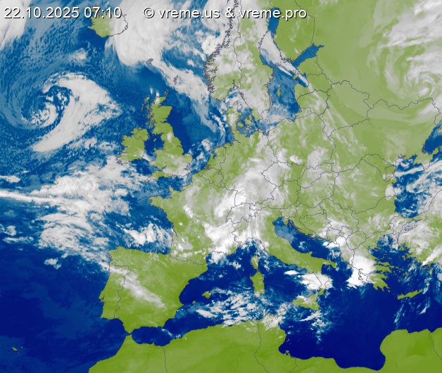 Prva slika prikazuje oblačnost v vidnem (podnevi), druga pa v infrardečem spektru.